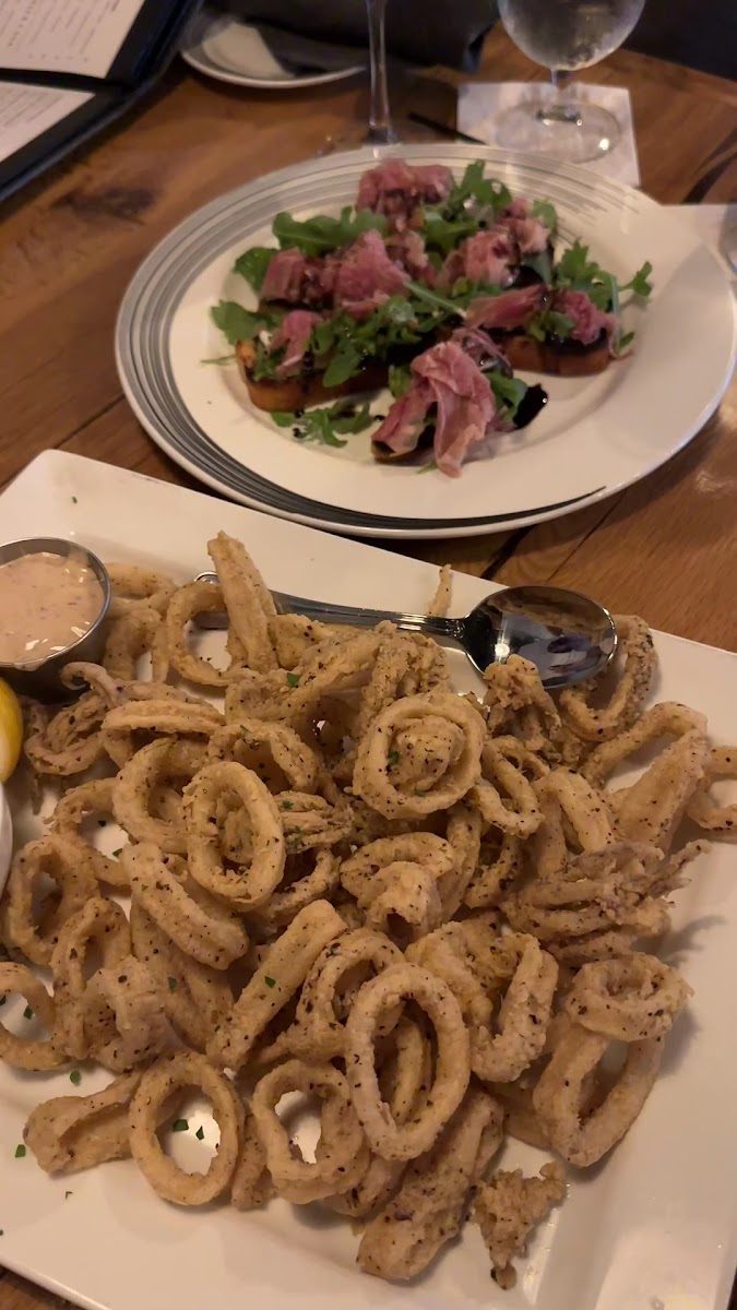 Relaxed vibes and great service. Ordered the lobster ravioli as my main and it was really good just not super crazy about the flavor of the squid ink pasta. Appetizers overall were great, my favs were the calamari and burrata fav cocktails were the martinis ! Definitely worth another visit !