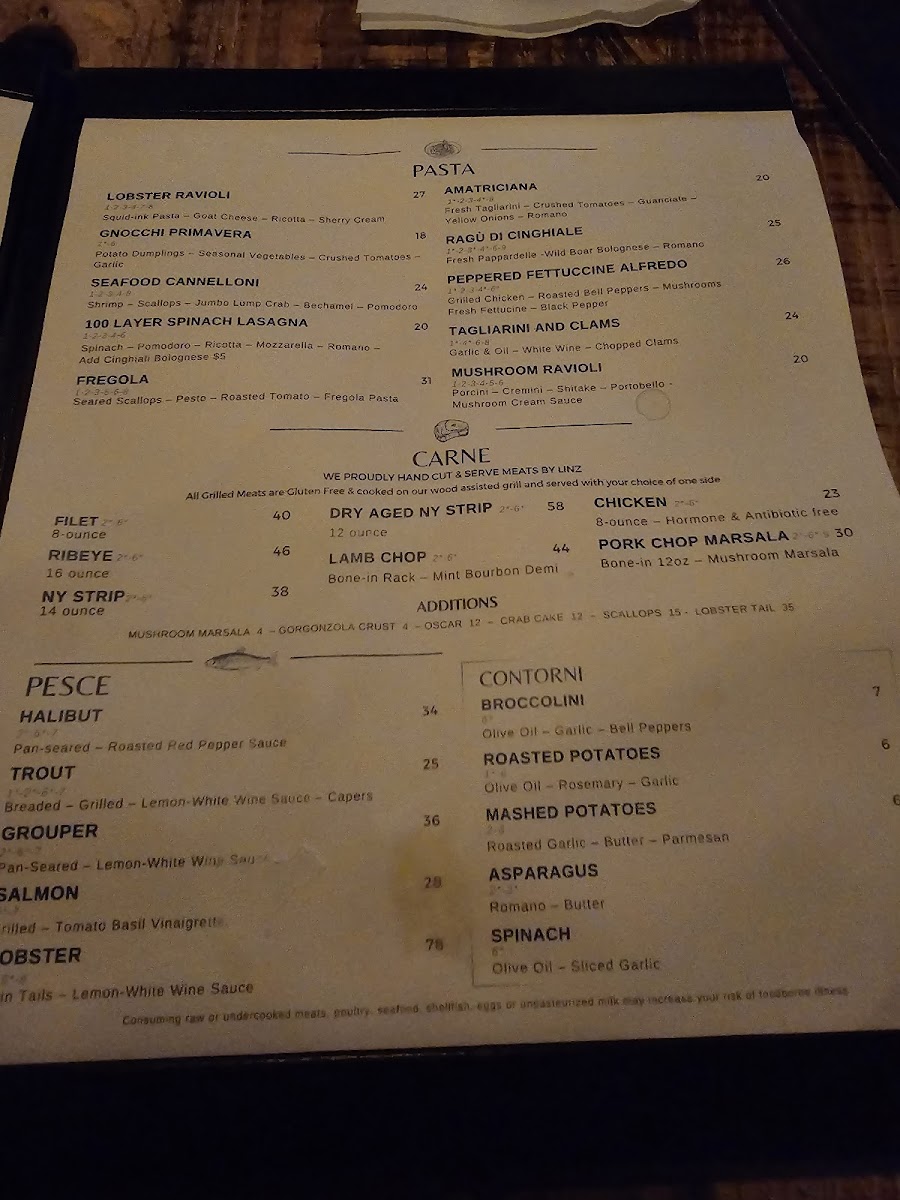 - Main dishes reflect Italian tradition with signature items such as chicken parmesan and veal marsala, alongside seafood specialties that echo the coastal vibe.